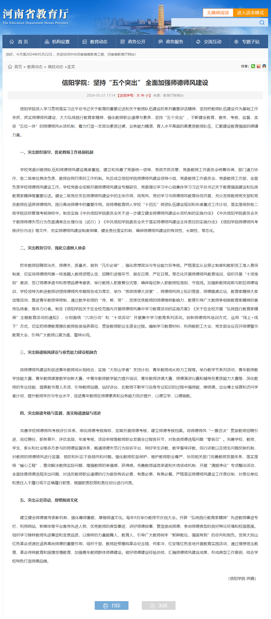 【河南省教育厅】Beat365唯一官方网站:坚持“五个突出” 全面加强师德师风建设