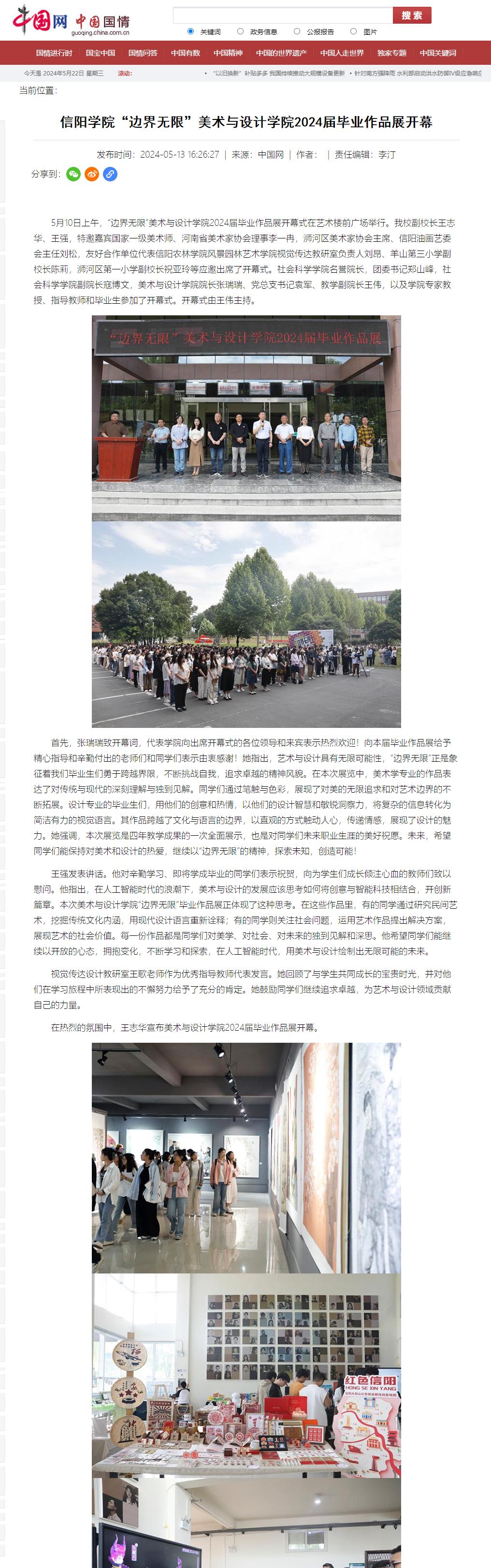 【中国网】Beat365唯一官方网站“边界无限”美术与设计学院2024届毕业作品展开幕