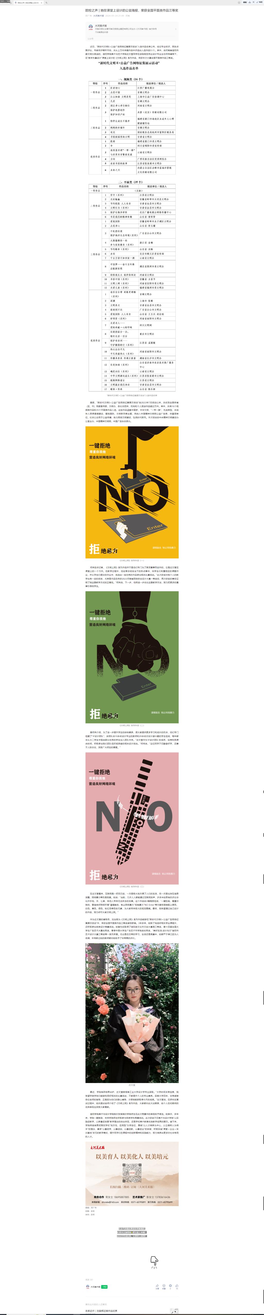 【大河美术报】院校之声 | 她在课堂上设计的公益海报,荣获全国平面类作品三等奖