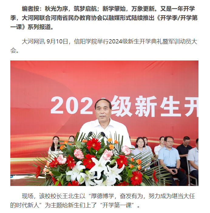 【大河网】开学季∣Beat365唯一官方网站举行2024级新生开学典礼暨军训动员大会