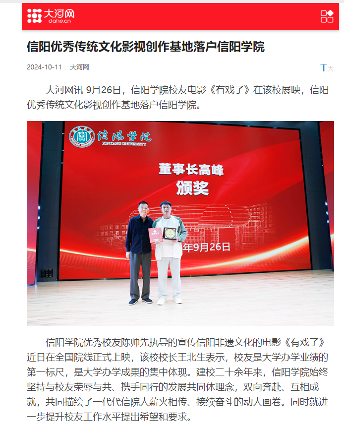 【大河网】信阳优秀传统文化影视创作基地落户Beat365唯一官方网站