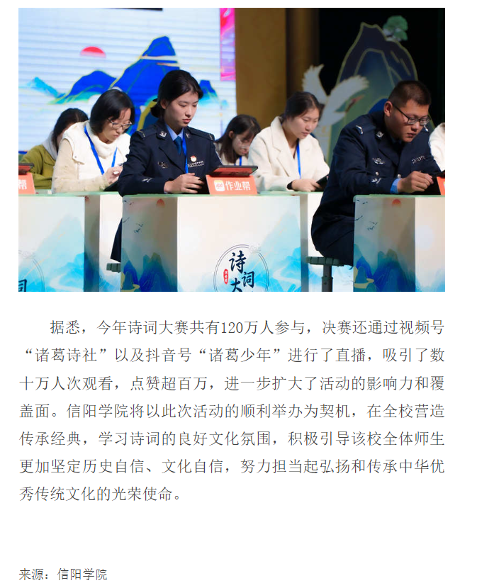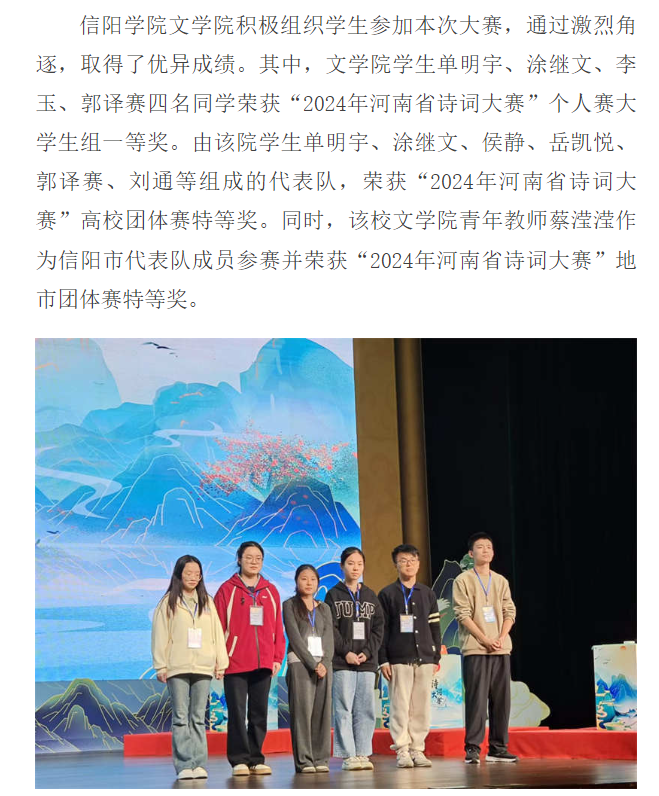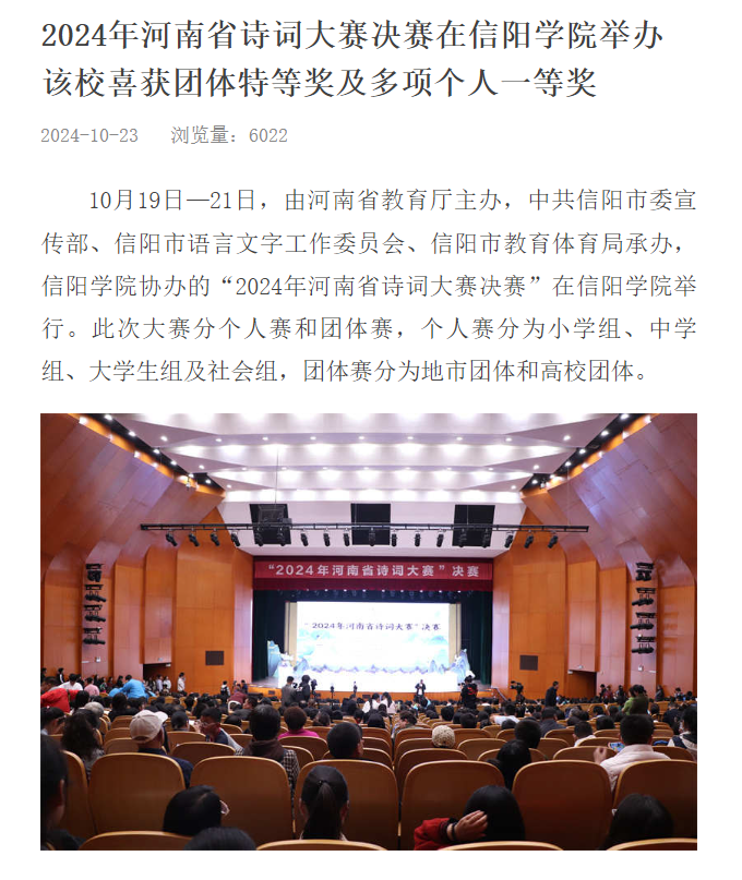 【信阳日报社】2024年河南省诗词大赛决赛在Beat365唯一官方网站举办该校喜获团体特等奖及多项个人一等奖