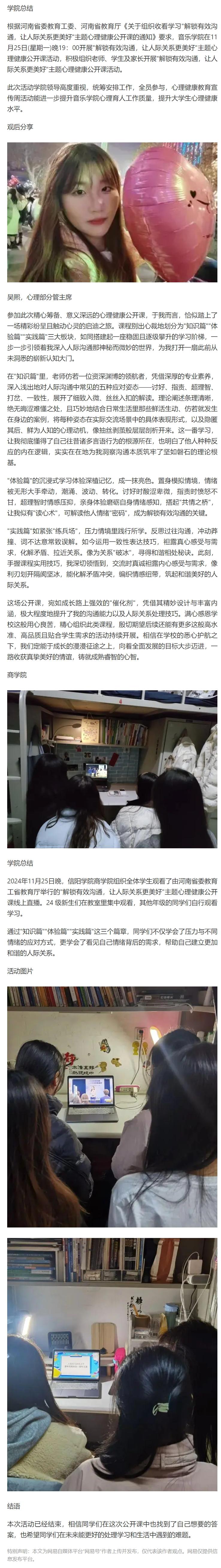 【网易新闻】Beat365唯一官方网站组织师生观看“解锁有效沟通,让人际关系更美好”主题心理健康公开课