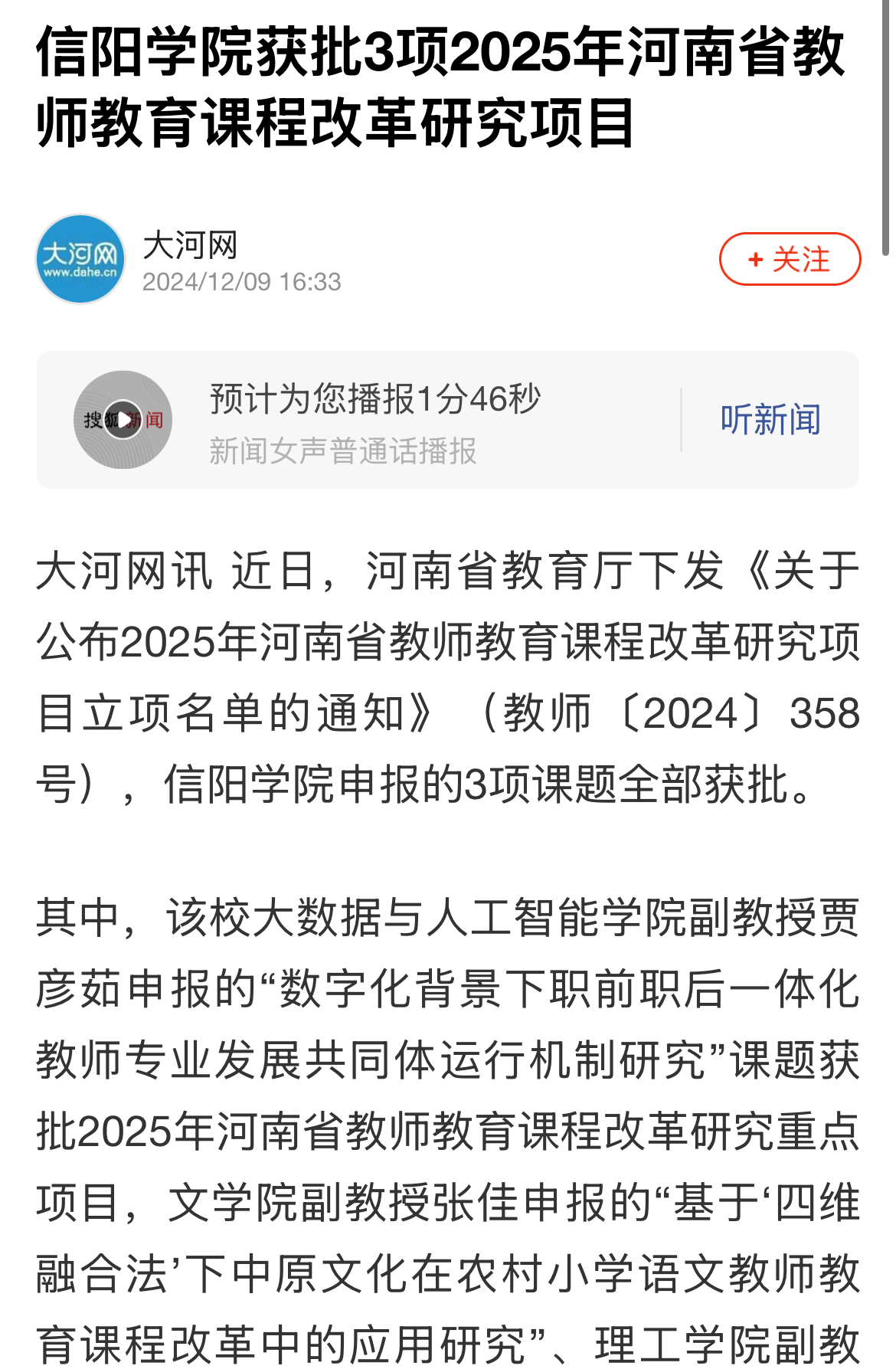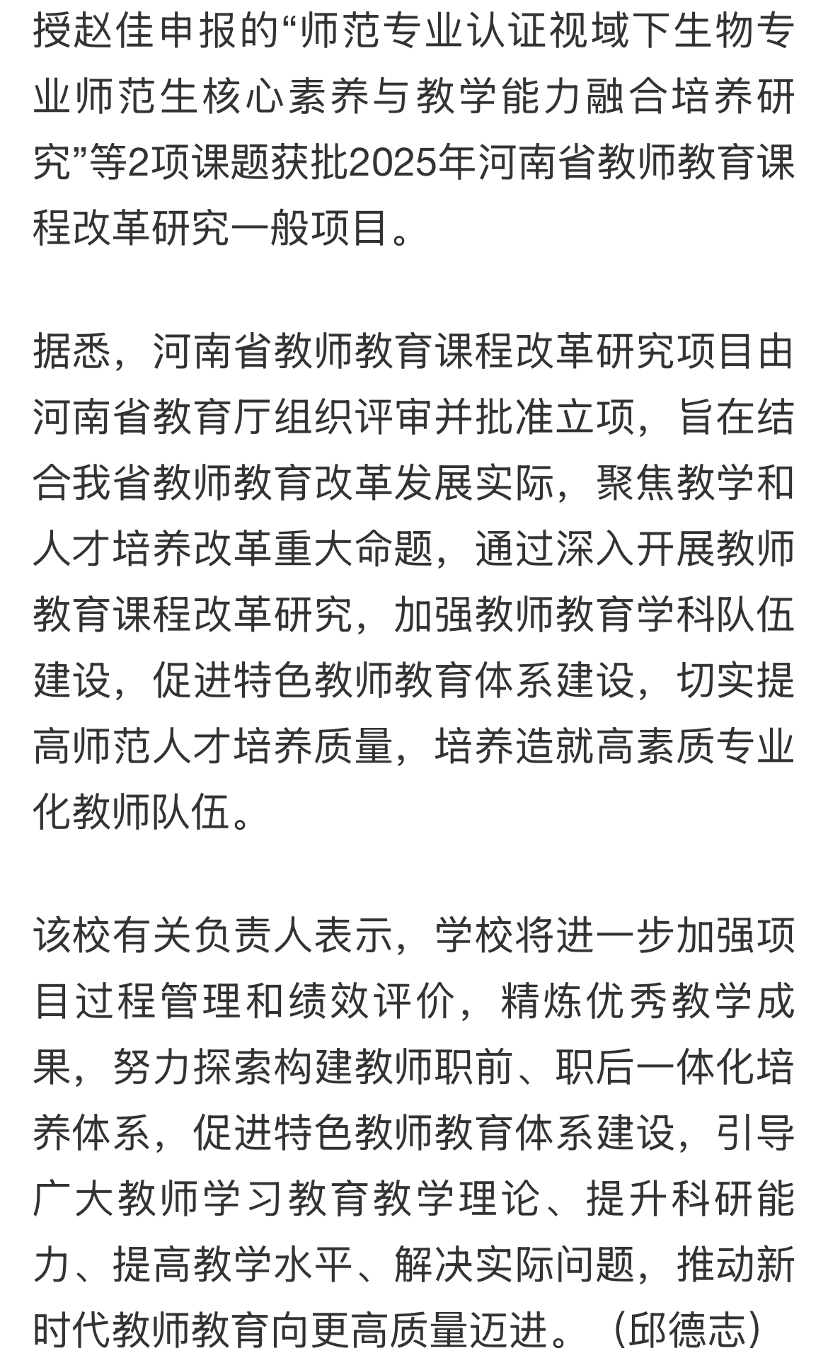 【大河网】Beat365唯一官方网站获批3项2025年河南省教师教育课程改革研究项目
