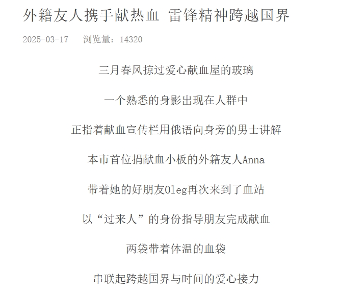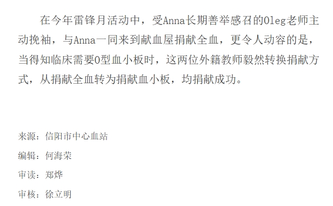 【信阳日报】外籍友人携手献热血,雷锋精神跨越国界