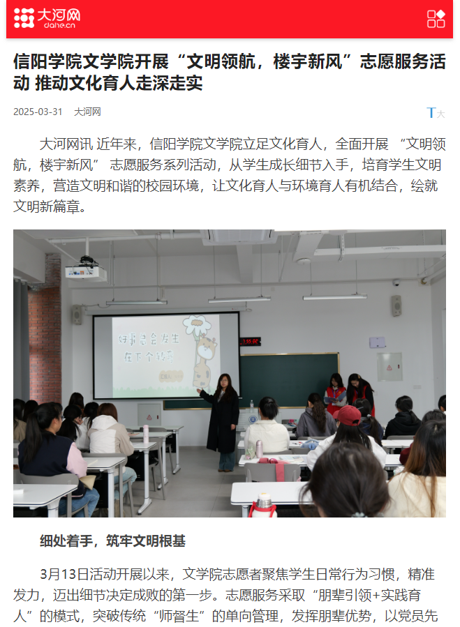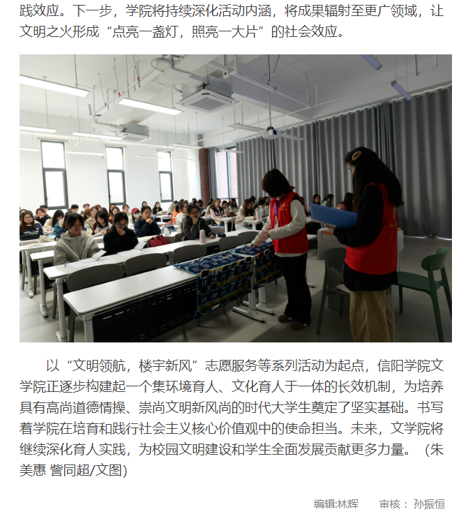【大河网】Beat365唯一官方网站文学院开展“文明领航,楼宇新风”志愿服务活动 推动文化育人走深走实