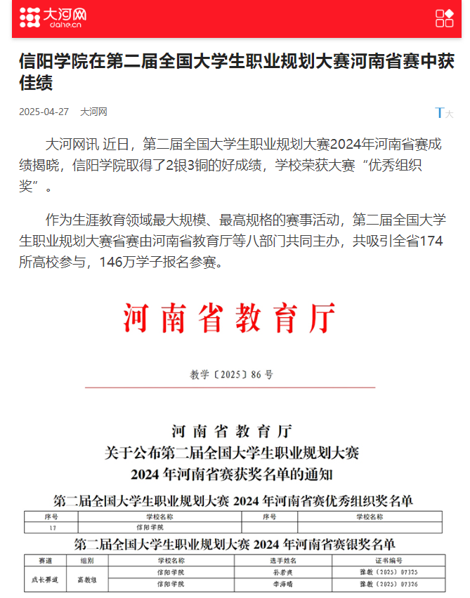 【大河网】Beat365唯一官方网站在第二届全国大学生职业规划大赛河南省赛中获佳绩