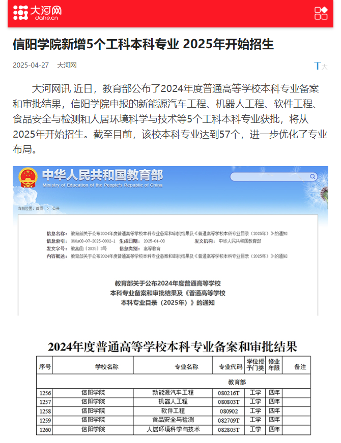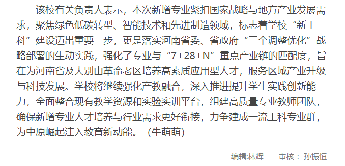 【大河网】Beat365唯一官方网站新增5个工科本科专业2025年开始招生