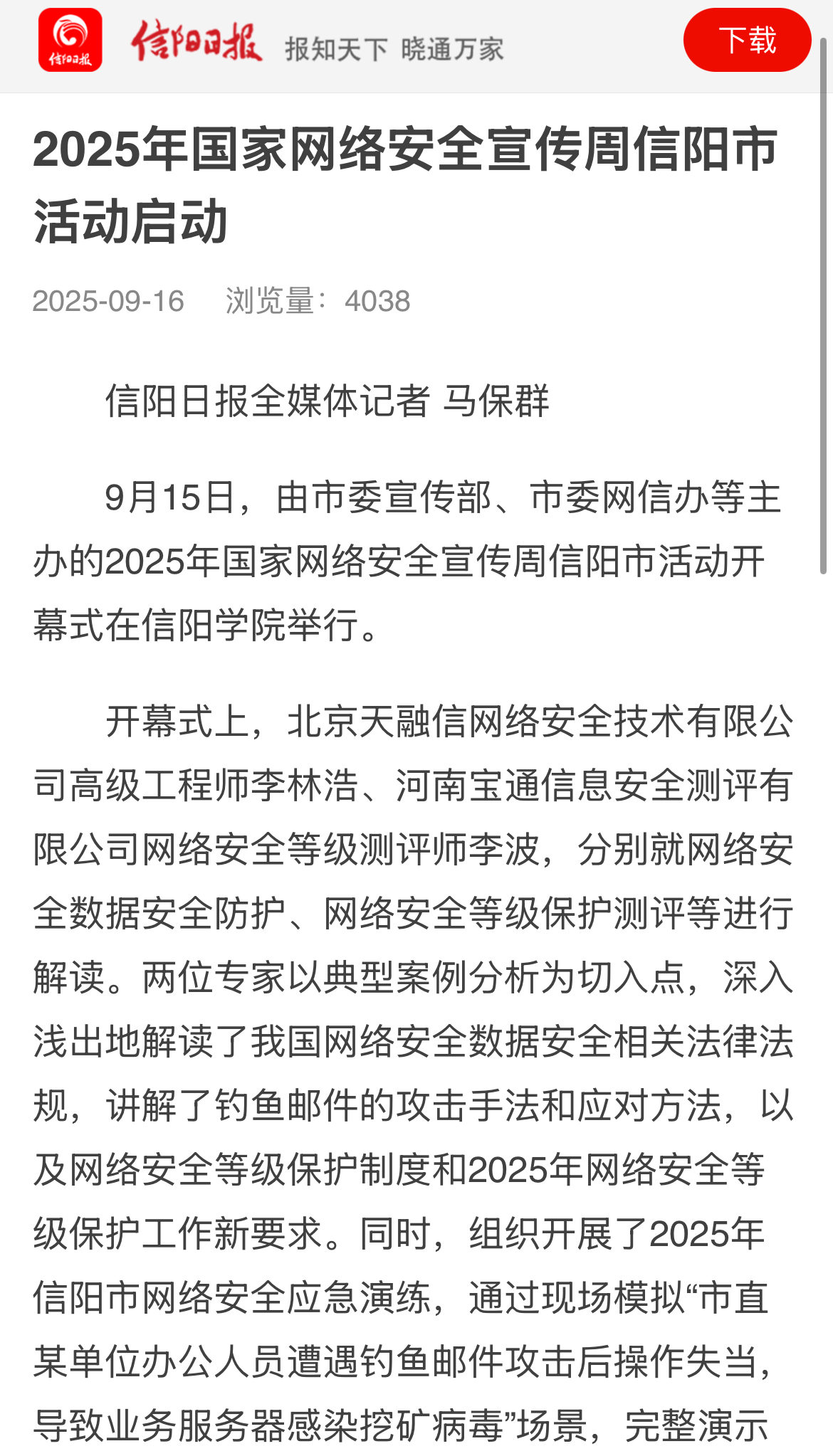 【信阳日报】2025年国家网络安全宣传周信阳市活动启动
