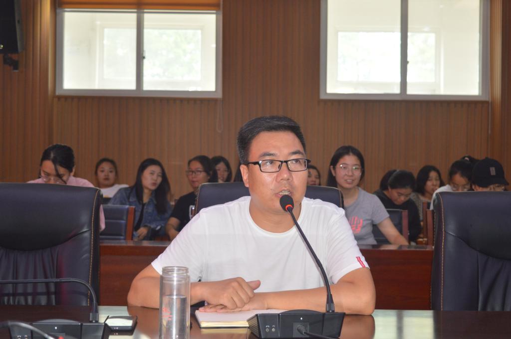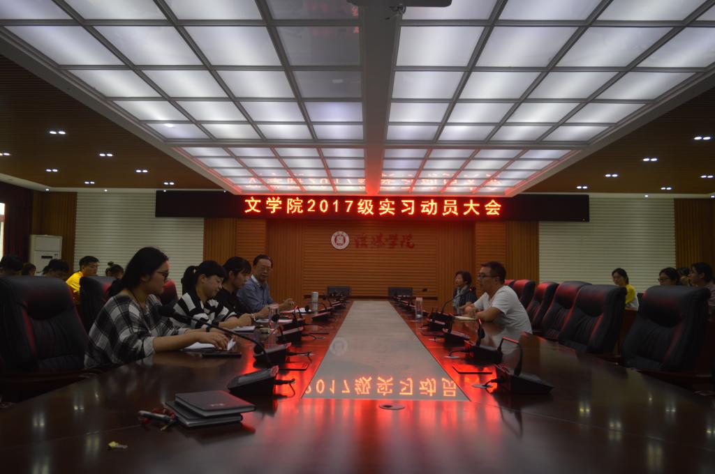 为进一步做好学生校外实习前的各项准备,推进实习工作的顺利开展。9月29日下午3点,我院在人文楼208会议室召开文学院2017级实习动员大会。参加此次会议的有文学院院长毛正天教授、党总支书记张甲楠、教学副院长黄亚妮,全体教师以及2017级同学,会议由张甲楠主持。