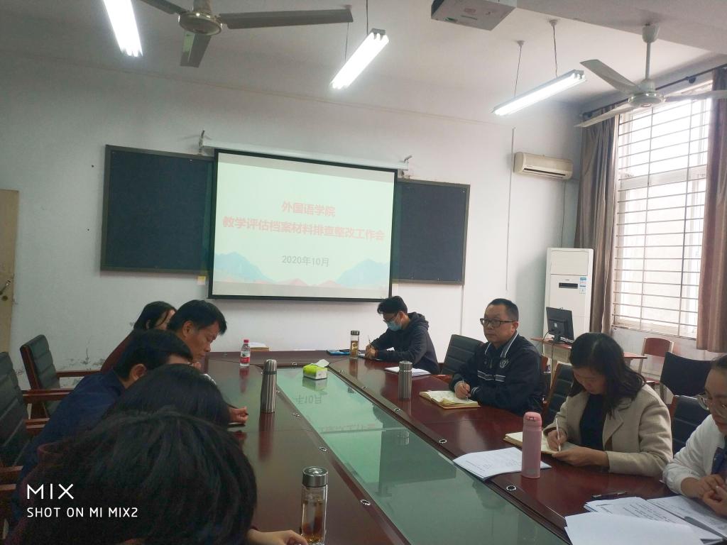 10月7日下午,外国语学院在外语楼110会议室召开了教学评估档案材料排查整改工作会。外国语学院院长罗德喜,副院长李静,教学干事柳衡,教务员李达及教研室主任参加了会议。会议由柳衡主持。