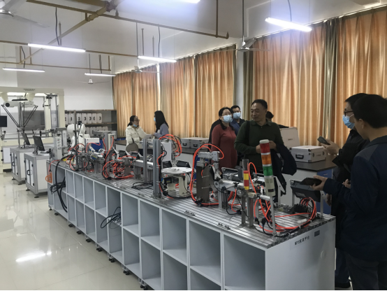 随后在刘依和蔡国际老师带领下,前往机电学院的智能控制实训中心、互换性与测量技术实验室、生物化学实验室和创新工艺社等实验实训场所进行参观学习,各位老师不仅沉浸在高标准、高投入建设的实验室和形式多样的校企合作中,而且被实验室的相关管理措施和台账记录所吸引,纷纷拍照留念。在参观创新工艺社的时候,大家都称赞学生们较强的动手能力和学院所提供的支持。刘依和蔡国际老师向大家讲述了机电工程学院实验室管理人员在本科教学合格评估工作中所作出的辛勤努力和心得体会,并很好的解答了各位老师在日常教学和管理工作中所遇到的问题。