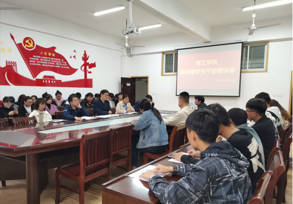 为加强学院学风建设,促进学生干部成长成才。10月12日下午,理工学院在理工楼201会议室召开新学期学生干部座谈会。参会人员有理工学院学工秘书杨晓杰、团总支书记黄艳伟、全体辅导员,十四届学生会成员及2020级各班学生干部代表。
