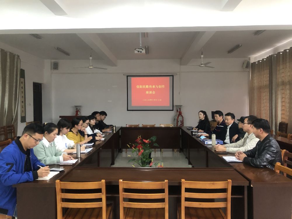 本次座谈会让大家对信阳民歌以及信阳非物质文化遗产有了进一步的认识和了解,对我院教师开展信阳民歌传承与创作工作具有重要指导意义,也为今后教学科研工作打下良好基础。