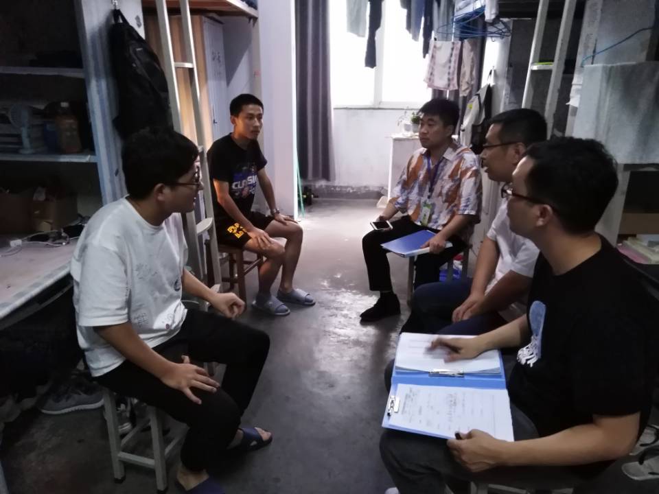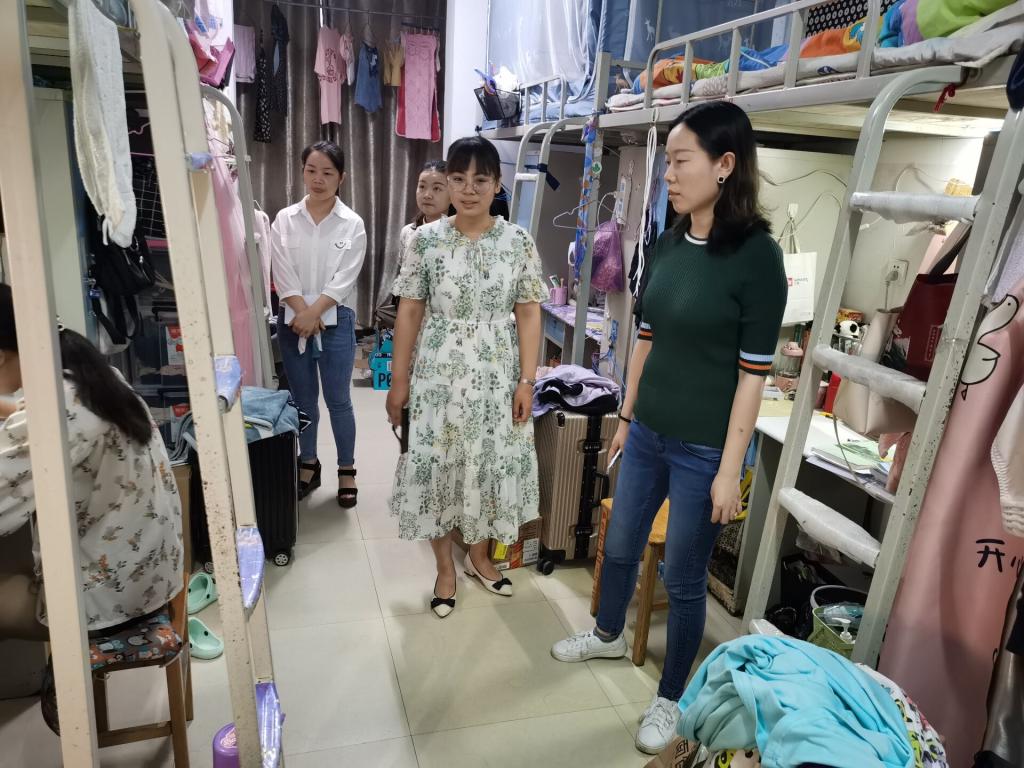 会后,程娇炎带领全体辅导员深入学生宿舍。在走访宿舍期间,她仔细询问了同学们近期的生活和学习状况,结合近期考试给同学们提出了要求,要求同学们务必要诚信考试,考前好好复习,全力以赴,争取为这学期自信满满的交上一份满意的答卷,并反复叮嘱学生要增强安全防范意识,在校要重视宿舍卫生及安全,注意人身财产安全,出行注意交通安全、饮食安全,收到陌生短信、电话或寻找暑期兼职工作时要做到一警惕、二分辨、三反映,及时向辅导员、家长询问是否可信,了解其真实性。