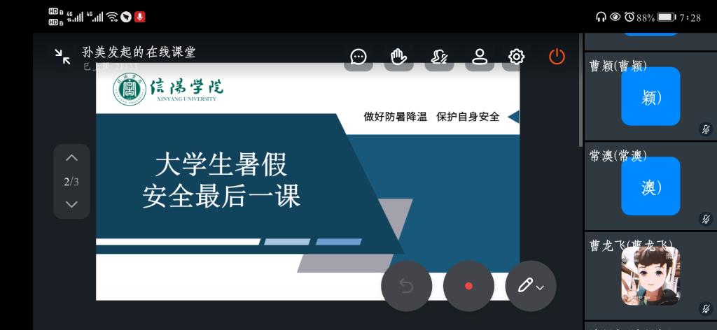 为进一步强化学生的安全意识,保障学生的暑假安全,数学与统计学院2020级、2019级和2018级共14个行政班在学生离校后再次开展了暑期安全教育线上主题班会。