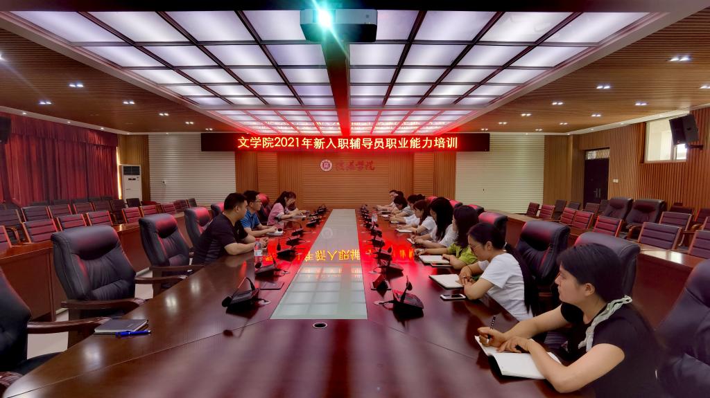 为进一步加强我院辅导员队伍建设,提升辅导员整体素质与团结协作意识,帮助和引导新进辅导员树立正确的职业认知,全面提升我院学工队伍整体管理水平,我院于7月13日全天在人文楼208会议室召开2021年新入职辅导员职业能力培训会,文学院党总支书记李赟,学工秘书徐远东,团总支书记胡若扬及全体辅导员参加此次会议,会议由徐远东主持。