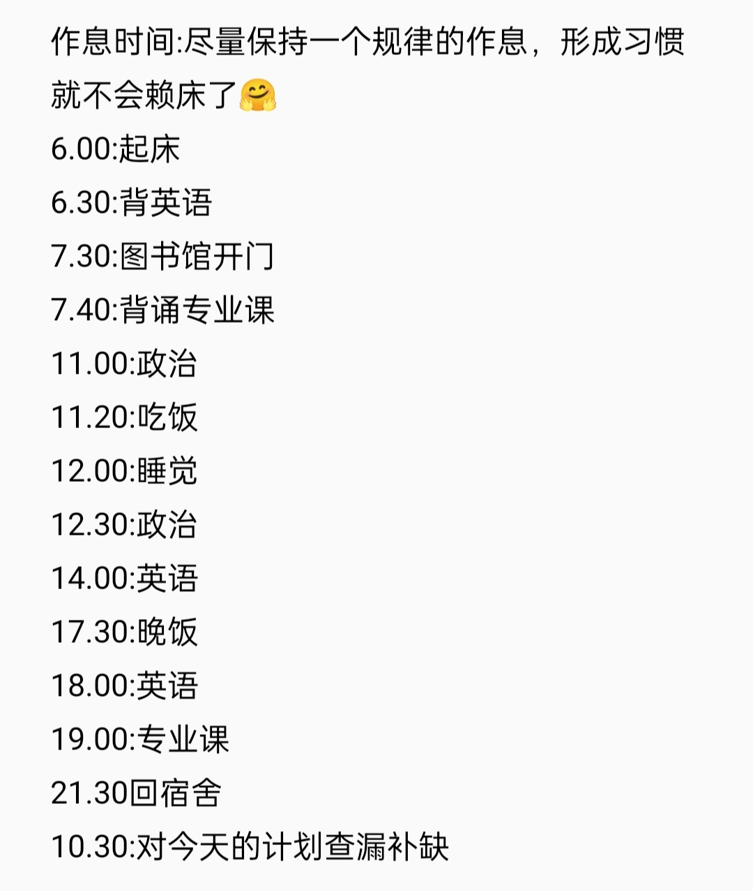 学校跟专业确定好了以后,考研也进入了正轨,在备考期间制定计划是非常重要的。根据自己所要复习的科目和自己的能力,去制定几个阶段性的计划,例如6-7月我要完成什么,7-8月要完成什么,如果能够制定日计划和周计划会更有目标性一些。