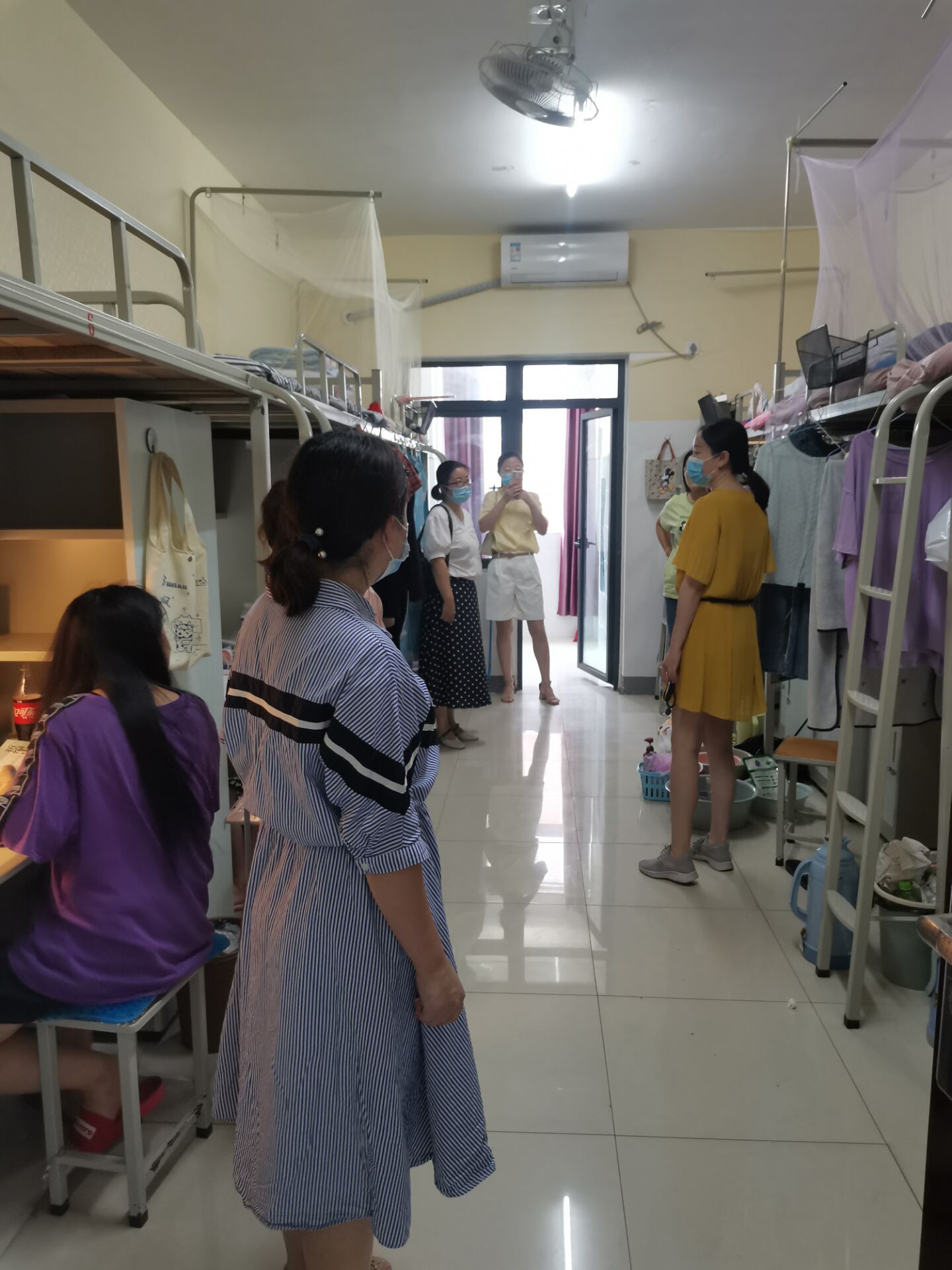 程娇炎一行逐个走访宿舍,深入了解学生的学习,生活状况,与学生深入交流,鼓励同学们克服疫情带来的影响和挑战,珍惜时光,努力奋战,并嘱咐学生特殊时期注意错峰就餐,保持安全距离,做好自我防护,保持科学健康生活方式。