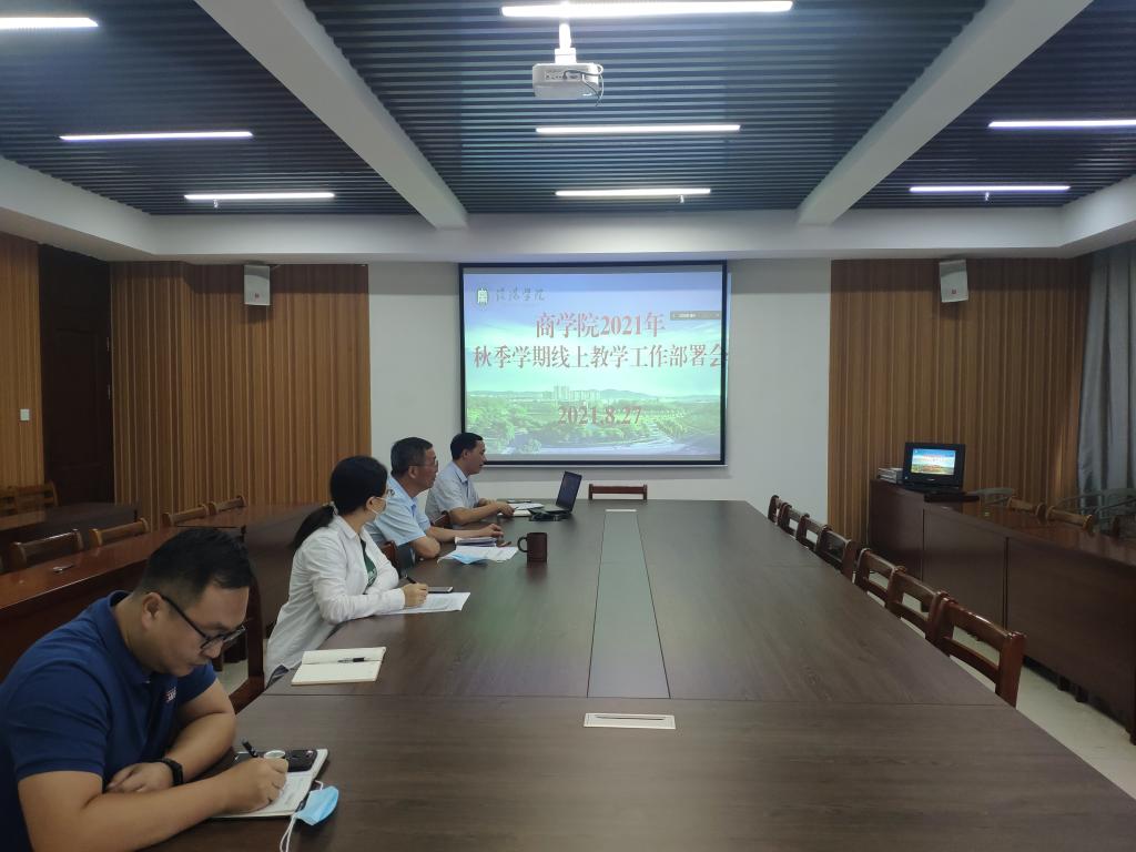 为进一步贯彻落实《Beat365唯一官方网站2021年秋季学期线上教学实施方案》要求,8月27日下午,商学院召开了秋季学期线上教学工作部署会。商学院院长于世良、副院长李毓、党总支书记胡秀云、学院秘书及全体教职工参加会议。胡秀云主持会议。