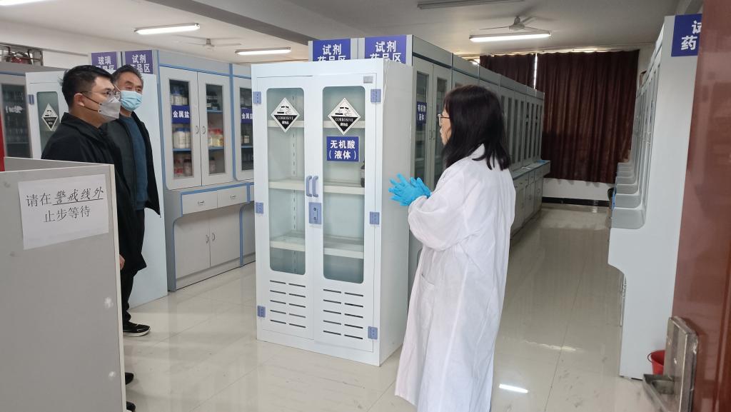 检查人员认真查看了汽车焊接和钻铣操作区的施工建设,并检查了各专业实验室的管理文件、工作日志、危险化学品管理记录、大型仪器设备使用记录、实验室安全检查记录等材料,实地查看了化学仪器药品室、生物准备室、水电气、气瓶等管理情况,并对检查中发现的安全隐患提出了具体的整改意见。