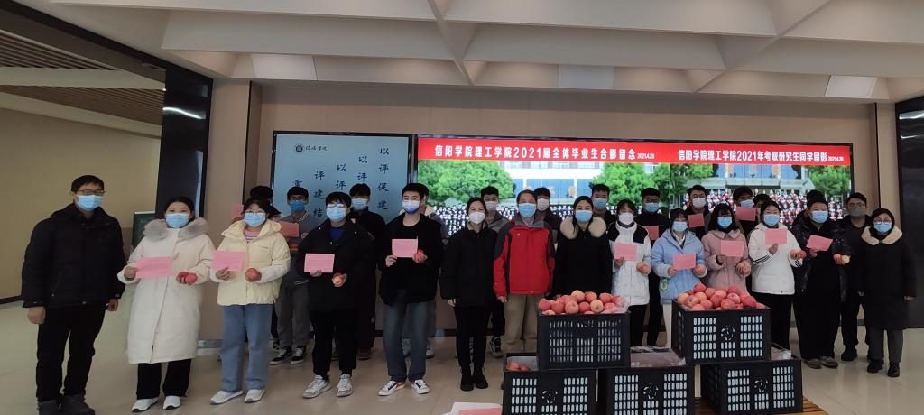 因受疫情影响,理工学院2023届考研学子继续留校复习,紧张应对研究生入学考试。学院与考研学子代表在理工楼会议室开展座谈,院长肖生发了解了考研学生的复习状态和生活需求,表示将竭尽所能满足大家学习和生活上的难题,为考研学子们创造良好的学习环境。会后,院长肖生发一行将苹果和考研寄语分发到考研学生代表手中勉励他们在最后冲刺阶段,攻坚克难,戒骄戒躁,以沉着稳重的姿态迎接考试的到来。