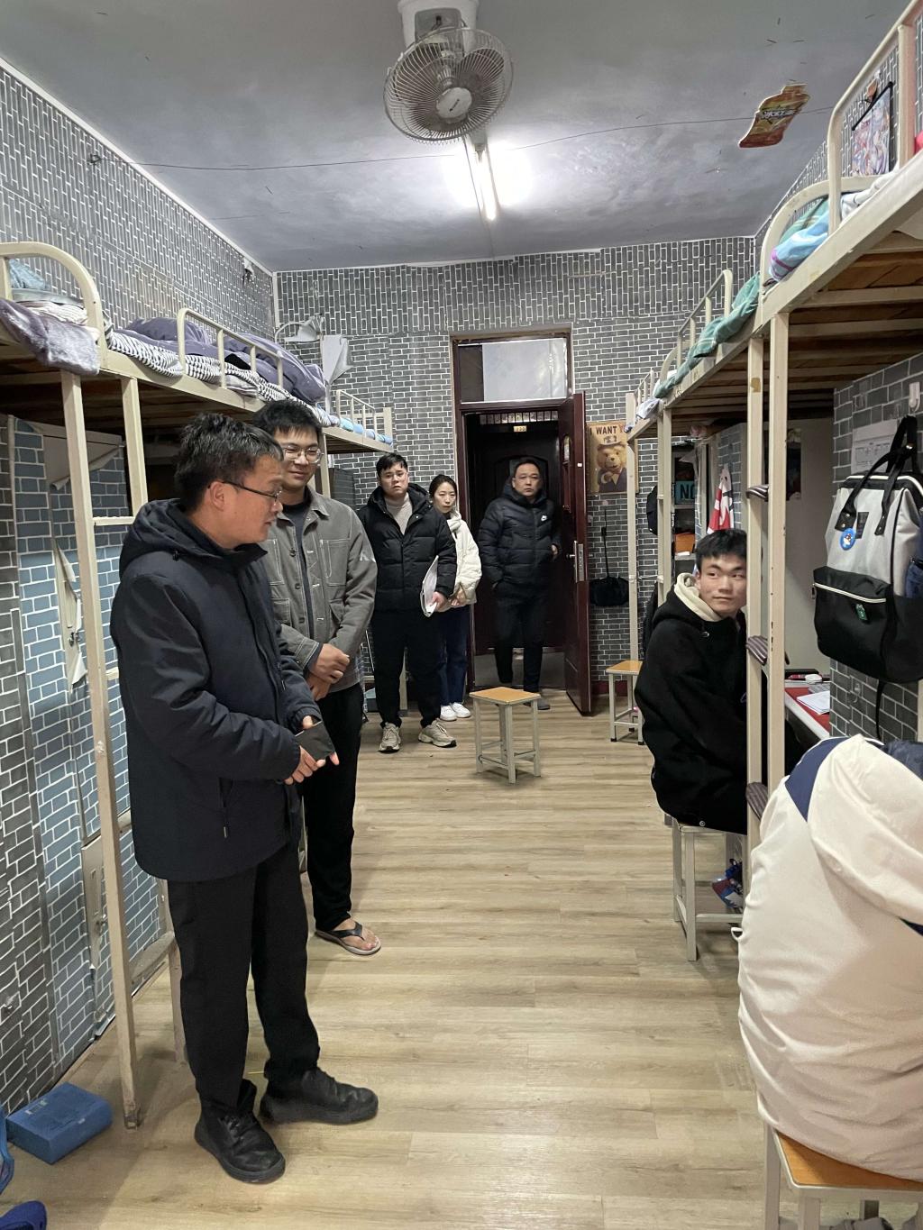 新学期伊始,为做好学生返校后的宿舍安全管理工作,深入了解学生的思想动态、学习生活情况,确保学生尽快进入学习状态、认真备考,2月13日下午,大数据与人工智能学院党总支副书记毛凤翔、学工干事鄢杰和全体辅导员深入学生宿舍开展走访工作。