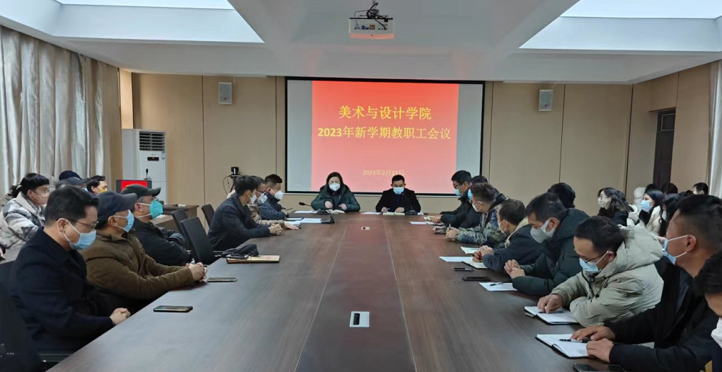2月11日下午,美术与设计学院2023年春季新学期教职工大会在艺术楼215会议室召开,美术与设计学院全体教职工参加了会议。会议由党总支书记袁军主持。
