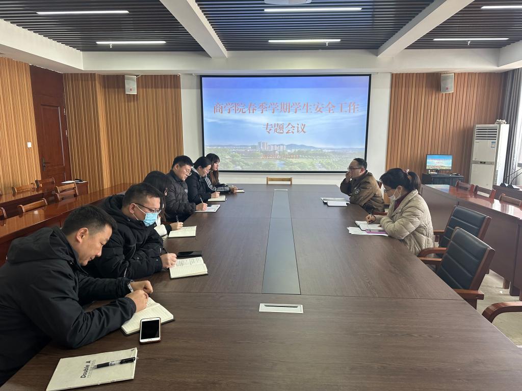 为增强学生安全意识,切实做好新学期安全教育工作,2月24日下午,商学院在综合楼715召开春季学期学生安全工作专题会议。党总支书记胡秀云,学工负责人花端阳以及全体辅导员参加了此次会议。