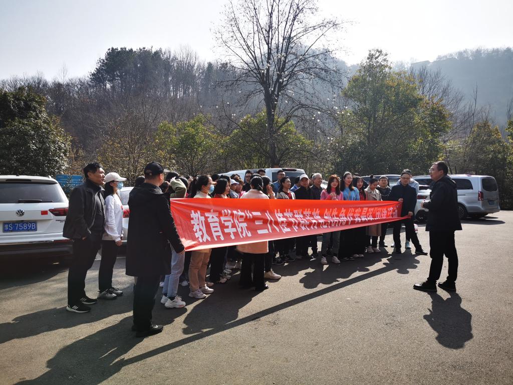 为进一步凝心聚力,奋勇向前,丰富女教职工的文化生活,3月4日上午,春意盎然,鸟语花香,教育学院组织全体教职工前往五峰岭开展了“三八佳节群芳艳,创先争优我最强”迎“三八节”踏青团建活动。