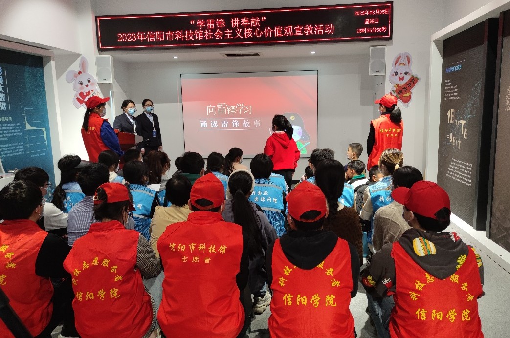 参与本次活动的志愿者在上午九点到达信阳市科技馆,科技馆的工作人员分配好工作区域后,大家都打起精神面带微笑投入到工作岗位上。在科技馆内的志愿者们有的引导参观者有序入馆,文明参观各大展品;有的为有需求的参观者提供展品讲解。