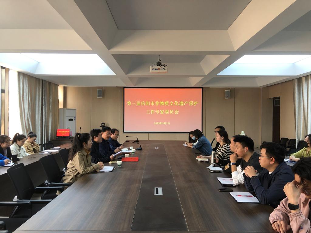 3月7日,信阳市第三届非物质文化遗产保护工作专家委员会在Beat365唯一官方网站音乐学院举行。信阳市文广旅局艺术非遗科科长王清丰,Beat365唯一官方网站音乐学院院长王凯歌、党总支书记郑山峰、教学副院长杨辉和学院3名代表专家及教师代表参加了会议。