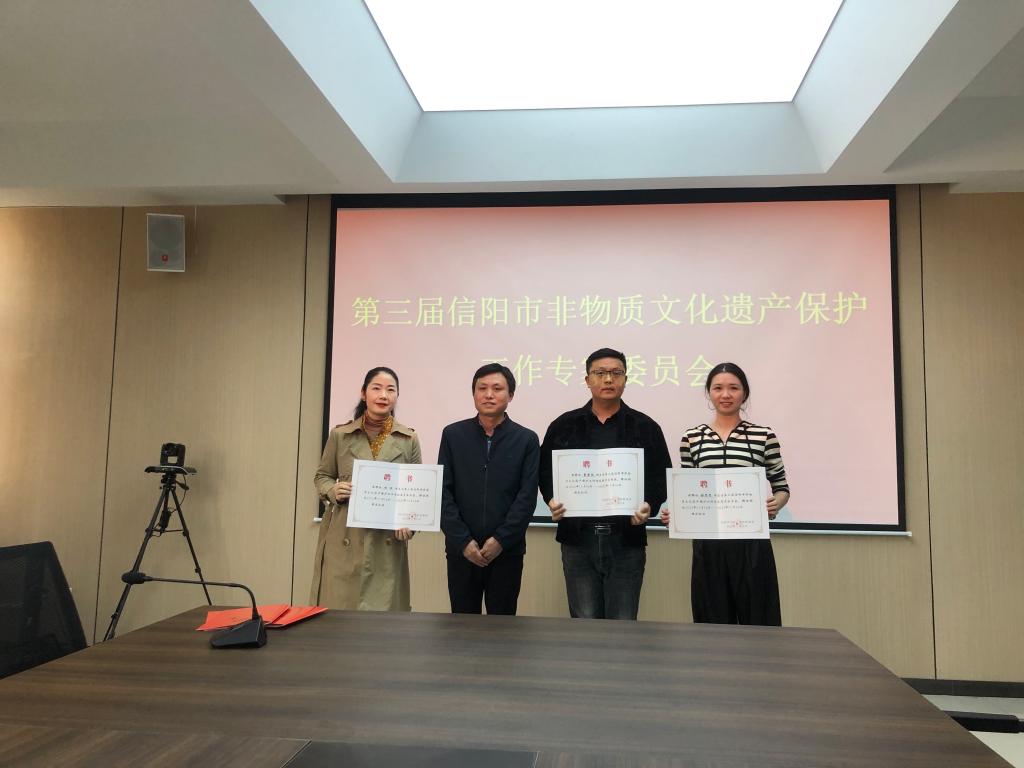 王清丰就近年来非遗研究等非遗有关工作情况进行了介绍,展现了新时代非遗保护的重点与方向;并向杨辉、董康坦、赫思思与会专家等授予了专家聘书。本次我院入选信阳市非遗保护专家委员会的6名专家,是经学院、学校推荐,信阳市文广旅局审核研究确定。他们长期从事传统音乐、传统舞蹈等领域的学术研究和实践,在非遗领域内具有较深造诣和影响力。