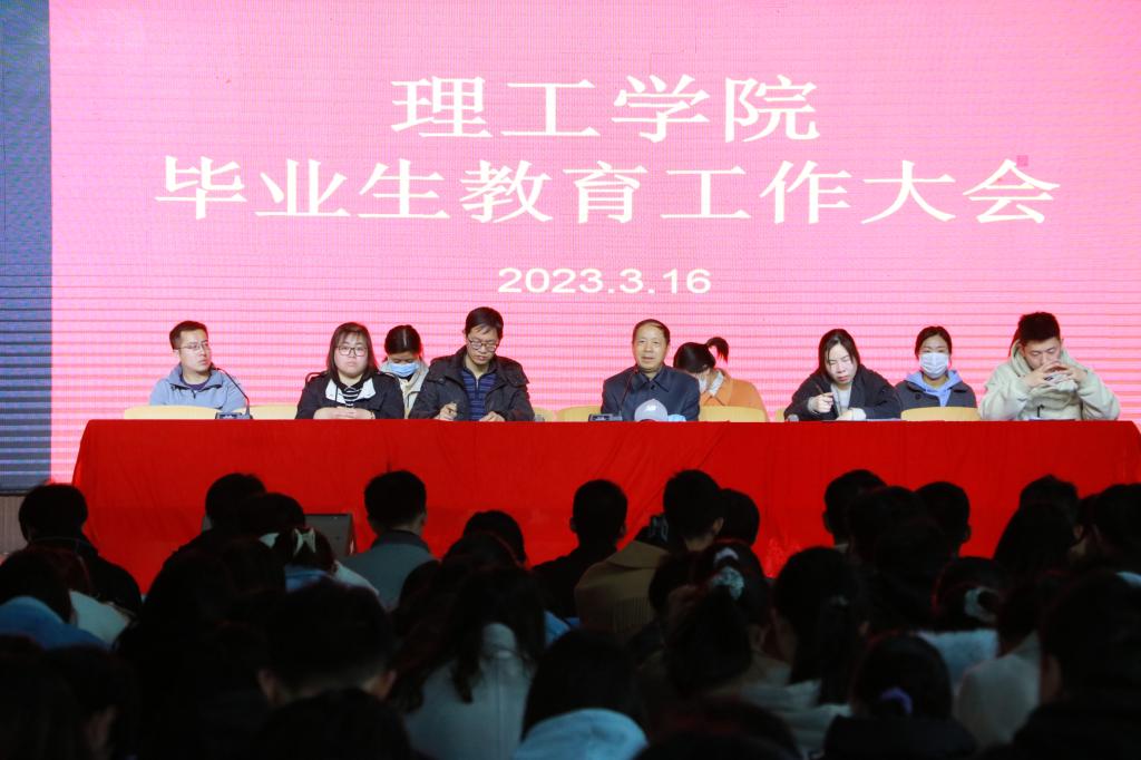 3月16日上午,理工学院在大学生活动中心召开2023届毕业生教育工作大会。院长肖生发、教学副院长李晓严、化学教研室主任张秋萍、学工秘书杨晓杰出席会议,全体辅导员及2023届毕业班学生参加会议。