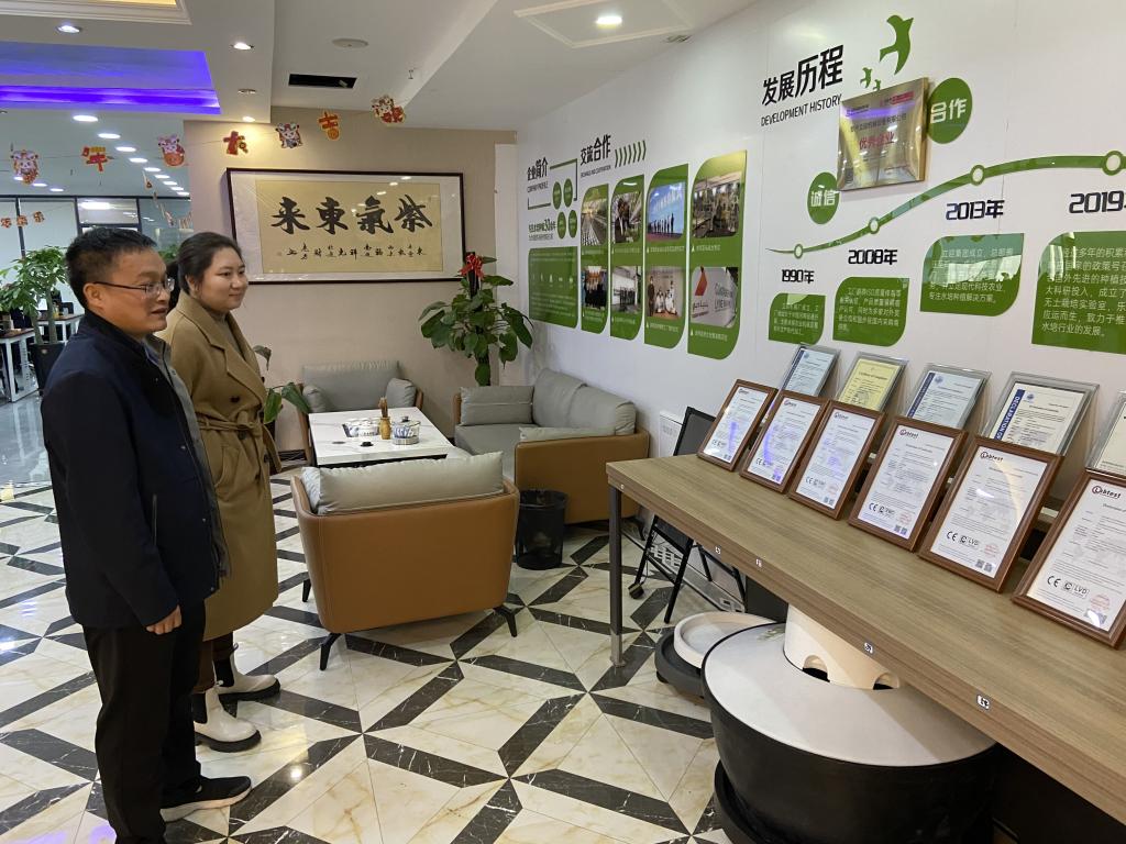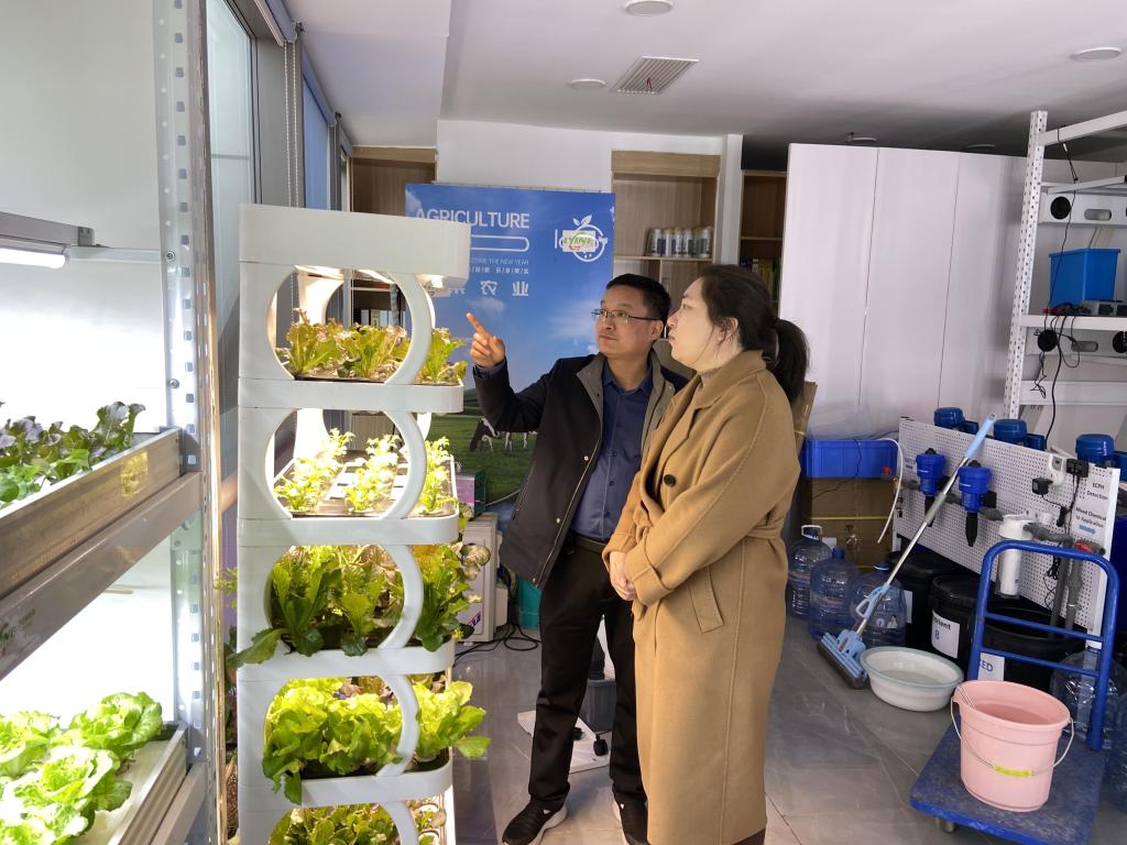 毛凤翔一行首先参观了公司的产品展示厅,接着双方进行了座谈。杨楠楠介绍了公司的发展历程并详细讲解了智能化水培农业系统的应用场景,介绍了公司在技术研发、市场推广、校企合作等方面的实践经验。毛凤翔简要介绍了大数据与人工智能学院的基本情况,并针对校友企业的行业属性和市场定位,重点介绍了学院物联网工程、人工智能专业在招生就业、人才培养、实习实训等方面的情况。他希望双方以此次交流为契机,拓宽就业新渠道,深化合作、携手共进。
