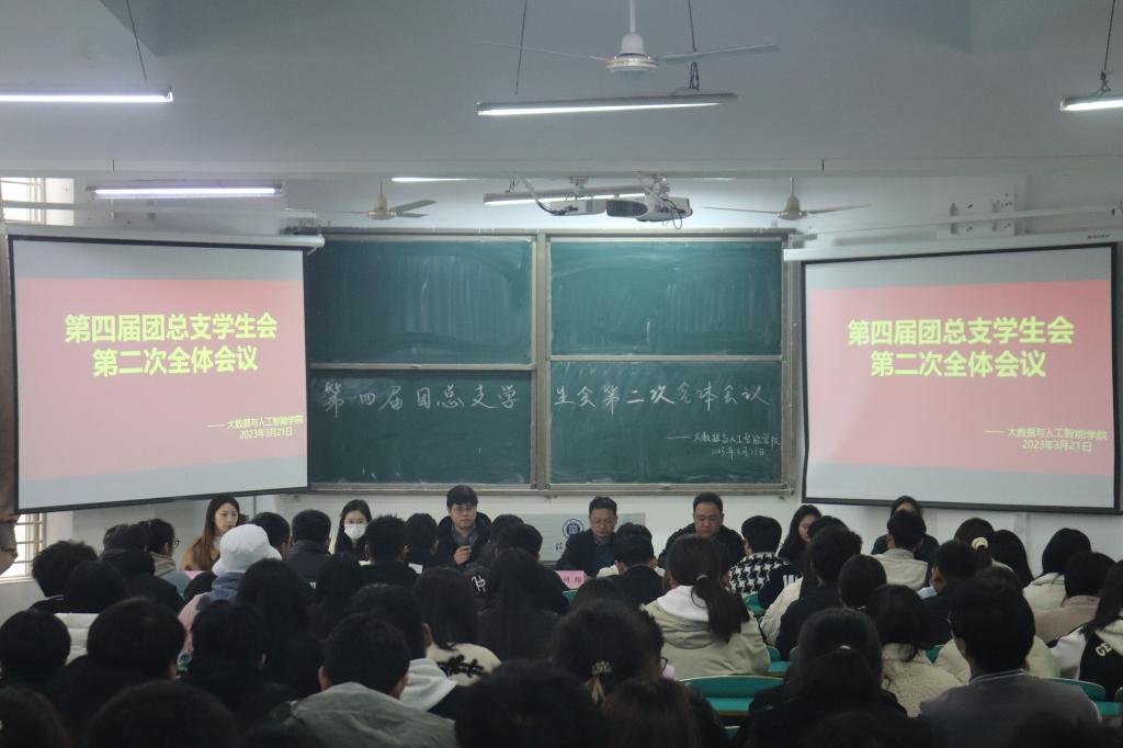 为加强学风院风建设,推动学院育人工作迈上新台阶,2023年3月21日,大数据与人工智能学院在数计楼105教室召开了第四届团总支学生会第二次全体大会。学院党总支副书记毛凤翔、学工干事鄢杰、团总支书记沈鹏超、全体辅导员出席本次会议,学生会成员、各班级班长、学习委员参加会议,大会由沈鹏超主持。