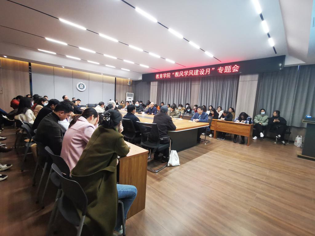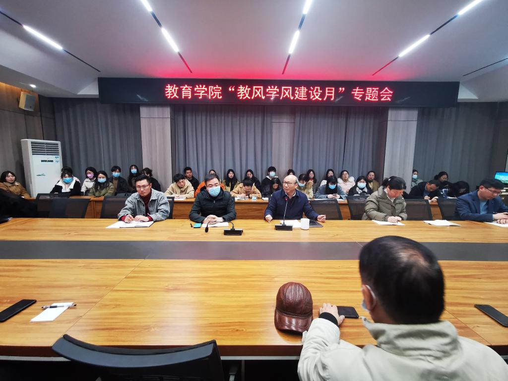 为进一步落实教师教学规范,提高人才培养质量,3月21日,教育学院在社科楼109会议室召开了“教风学风建设月”专题会。名誉院长、党总支书记张甲楠、教学副院长段海丹及全体教师参加了此次会议,会议由张甲楠主持。