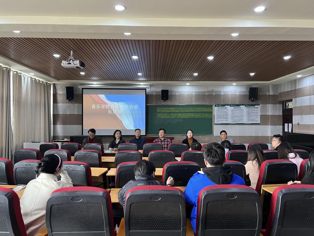 为全面提升青年教师课堂教学能力和水平,3月24日下午音乐学院在艺术楼205举行了青年教师课堂教学验收反馈会,音乐学院院长王凯歌,副院长杨辉,学院督导以及青年教师参加了此次反馈会。