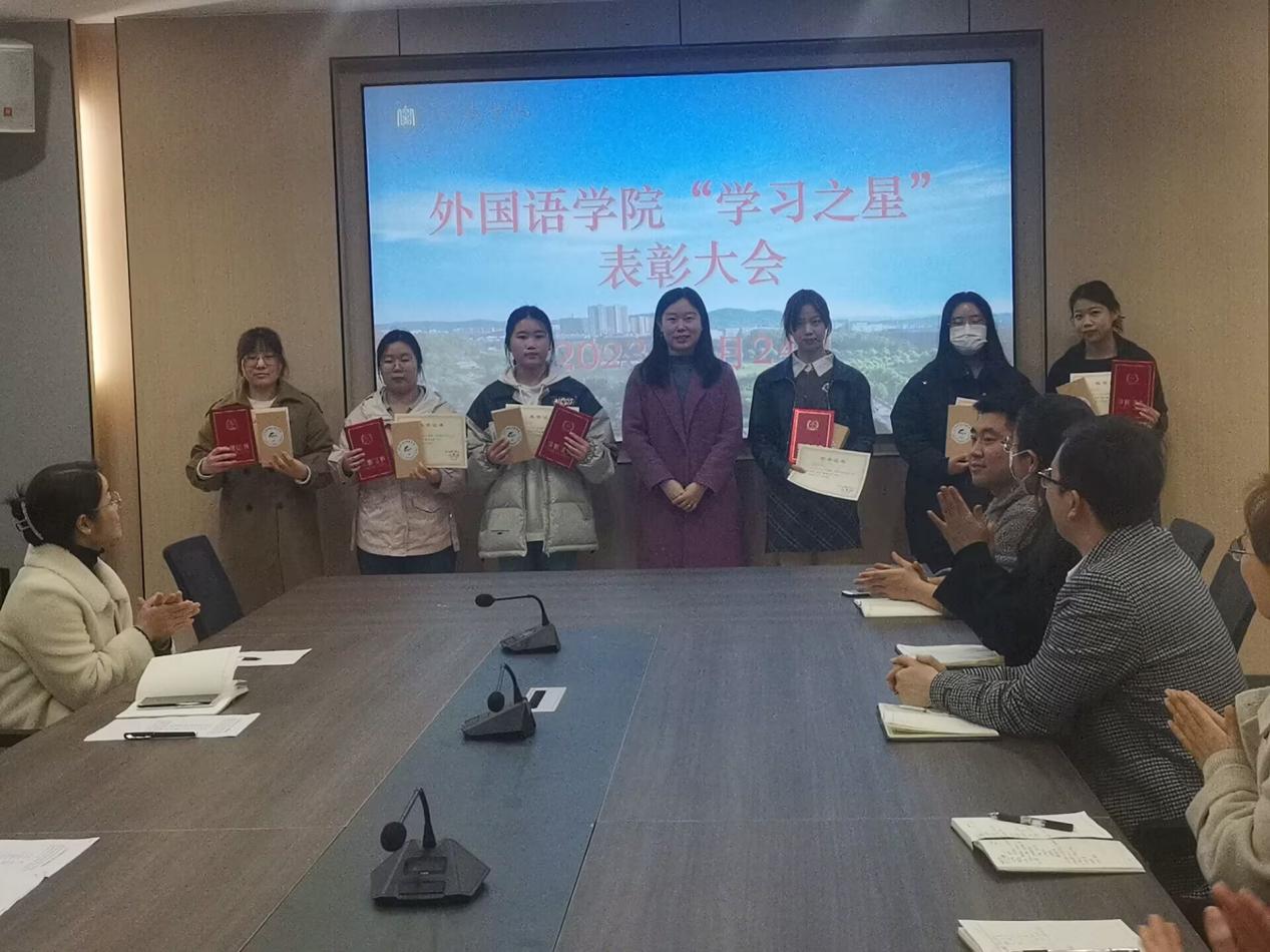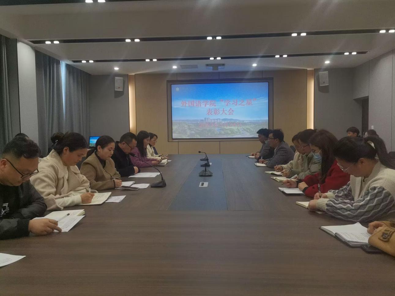 3月24日下午,外国语学院在外语楼110会议室举行2022-2023学年第2学期“学习之星”表彰会议,外国语学院院长罗德喜、党总支副书记程娇炎出席会议,学工干事何珊珊、全体辅导员、获奖学生以及各年级的学生代表参加会议。会议由学工干事何珊珊主持。