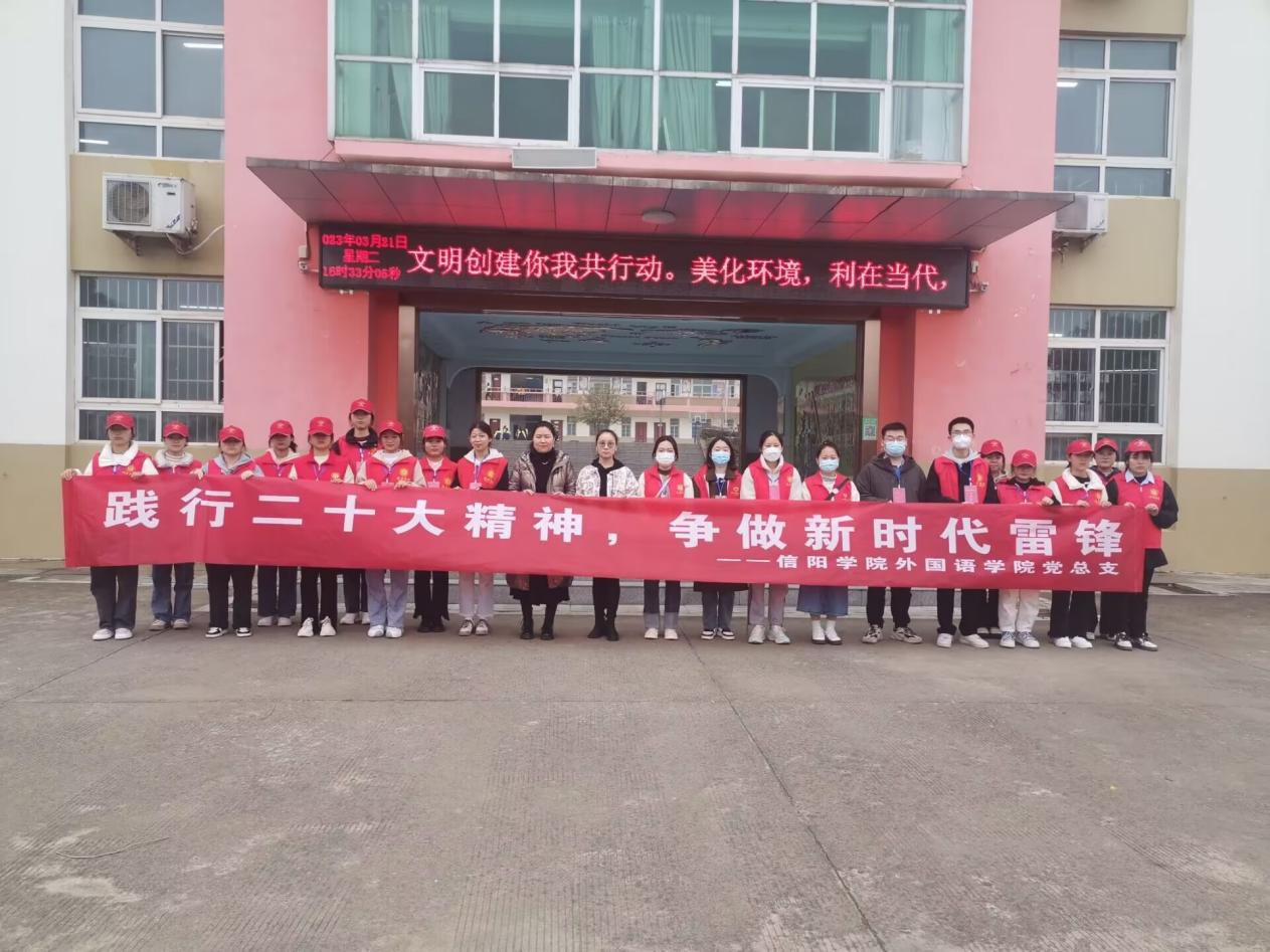 为深入贯彻党的二十大精神,弘扬新时代的雷锋精神,培养同学们坚定的理想信念,3月21日下午,外国语学院党总支组织志愿服务队走进信阳市浉河区南湾湖第七小学,开展了“践行二十大精神,争做新时代雷锋”主题教育活动。
