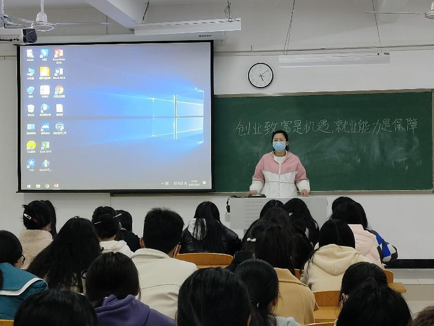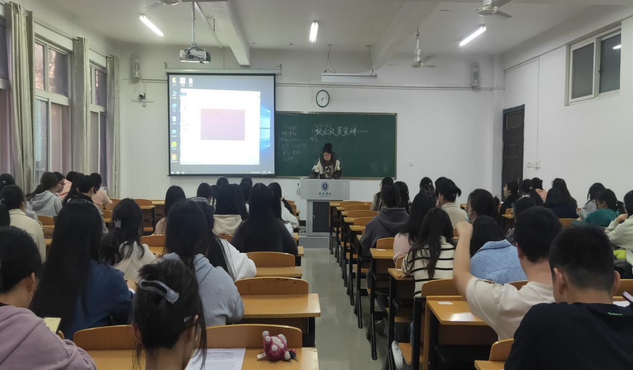 豁艳老师向学生介绍文学院毕业生就业的主要去向,所从事的行业和所在的相关单位,以及工作所在地的大致分布情况。并通过案例分析及面试情景介绍,为同学们求职指明了方向。