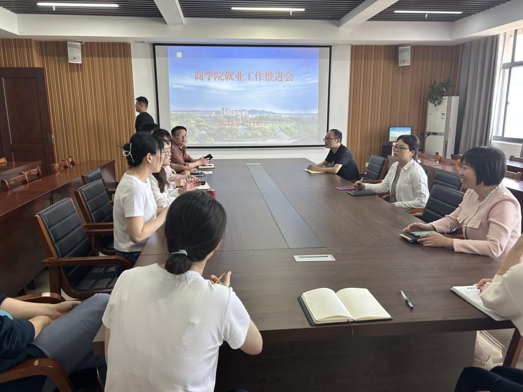为深入落实国家关于高校毕业生就业工作的决策部署,进一步推进我院2023届毕业生就业工作,4月18日上午,商学院在综合楼715会议室召开了2023届毕业生就业工作推进会。商学院党总支书记胡秀云,副院长吴新静、学工负责人花端阳以及全体辅导员参加了会议。