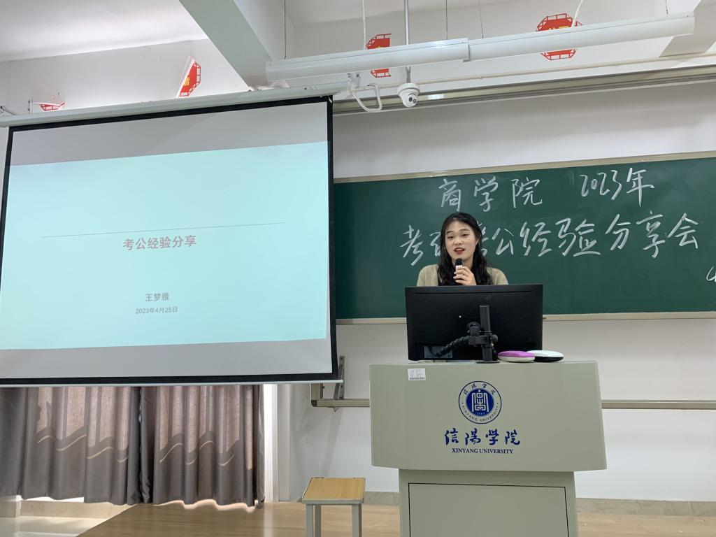为进一步加深我院学生对考研、考公的了解,明确备考目标,掌握相关技巧,更好地发挥优秀毕业生的榜样带动作用。2023年4月25日下午3点,商学院在综合楼305教室召开考研经验交流分享会。本次分享会邀请了王梦雅、王乐乐、王晶、王露雨、康佳倩等5名同学现场交流经验,分享考研考公心得。学工负责人花端阳、全体辅导员老师、2020级学生参加了本次分享会。