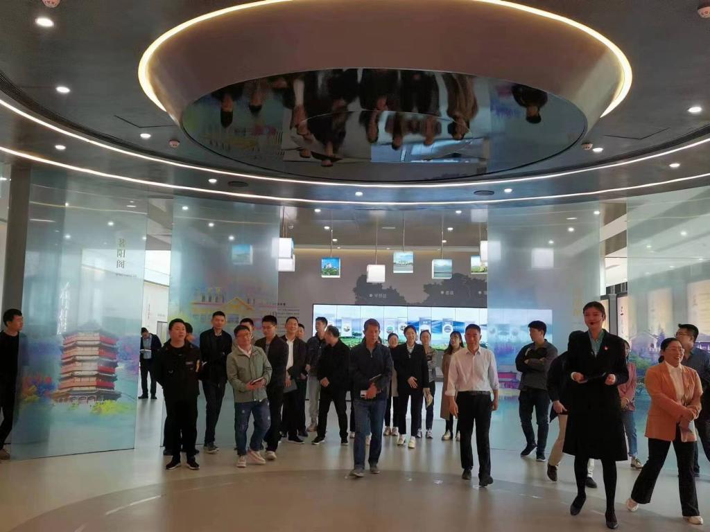 土木工程学院师生代表首先参观了信阳CAZ城市展厅,在讲解员的带领下,师生们开启了一场“淮上故国”之旅。从“茶韵古都”的茶香四溢到“红色精神”的革命红城,从“豫风楚韵”的历史古城到“绚丽画卷”的魅力古都,一行人身临其境,感受着名茶古都信阳迸发的蓬勃生机。