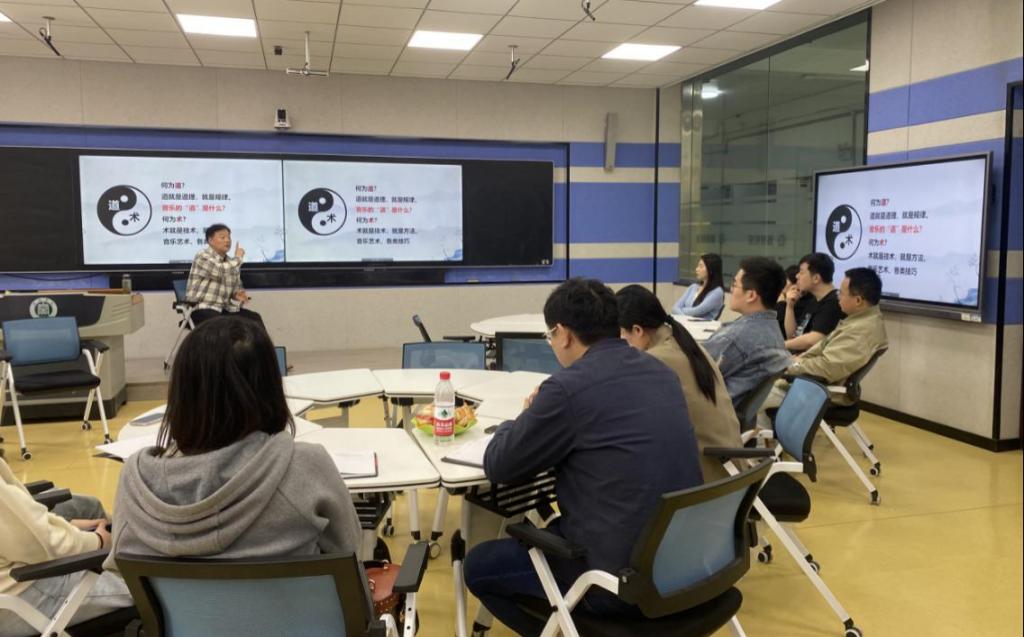 4月27日下午,音乐学院在人文楼南楼智慧教室109举办了主题为“漫谈音乐教学中‘由技入道’的理解应用”的青年教师培训讲座。音乐学院王凯歌院长担任主讲嘉宾,我院青年教师围绕这一主题展开了研究与探讨。
