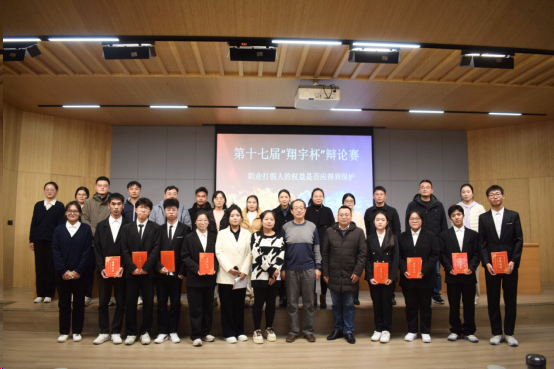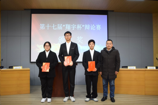 本次辩论赛,最终反方队伍获胜,戚育栋获最佳辩手奖,吴婉秋、赵德印、张艺瀛获得优秀辩手奖。活动最后,评委老师们为获奖选手颁奖并合影留念。