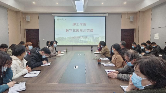 12月7日下午,理工学院在理工楼201会议室开展数字化教学示范课暨研讨会活动,院长肖生发、教学副院长李晓严以及全体教师参加本次会议,会议由李晓严主持。