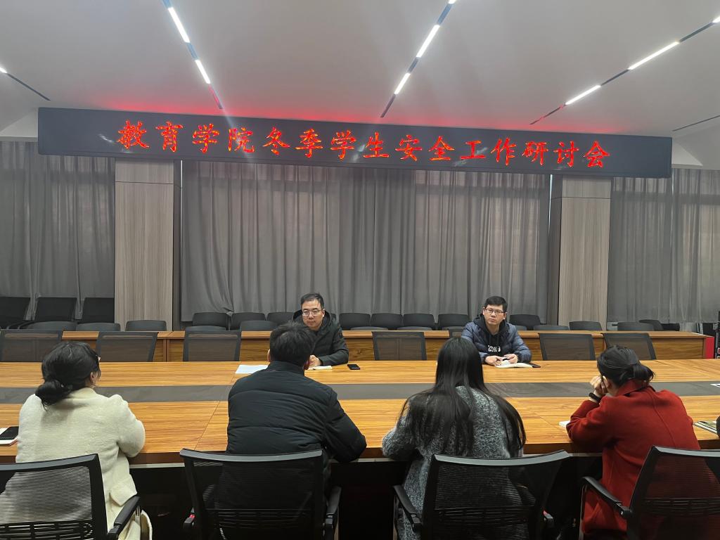 12月8日下午,教育学院在社科109会议室召开了2023年冬季学生安全工作研讨会,党总支书记张甲楠,学工干事郝昊以及全体辅导员参加了会议。