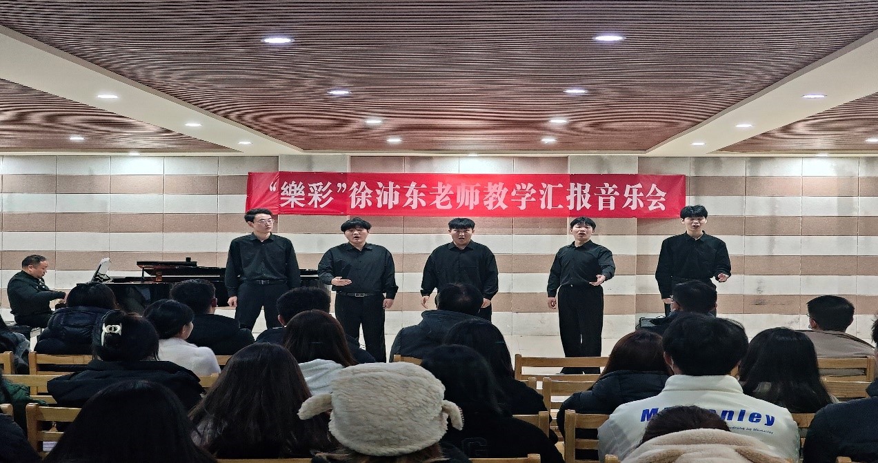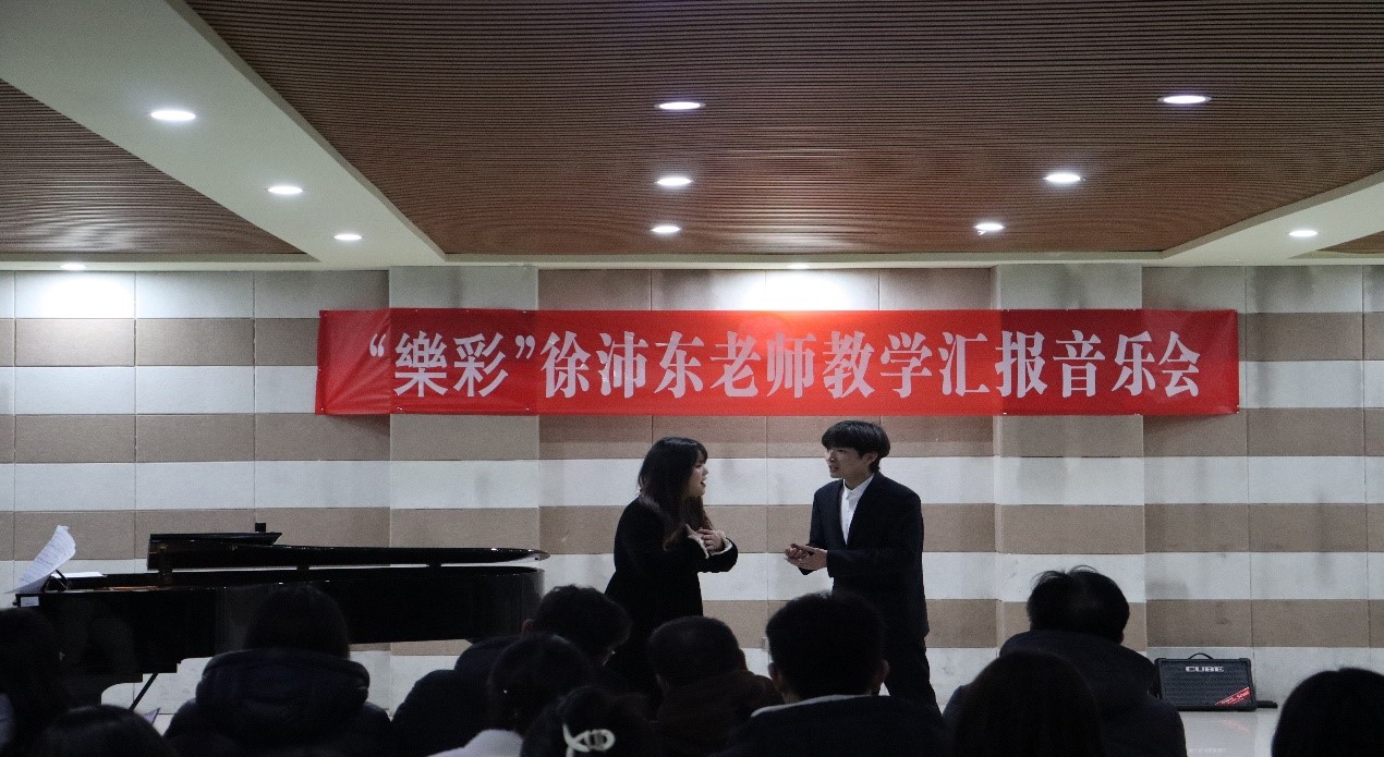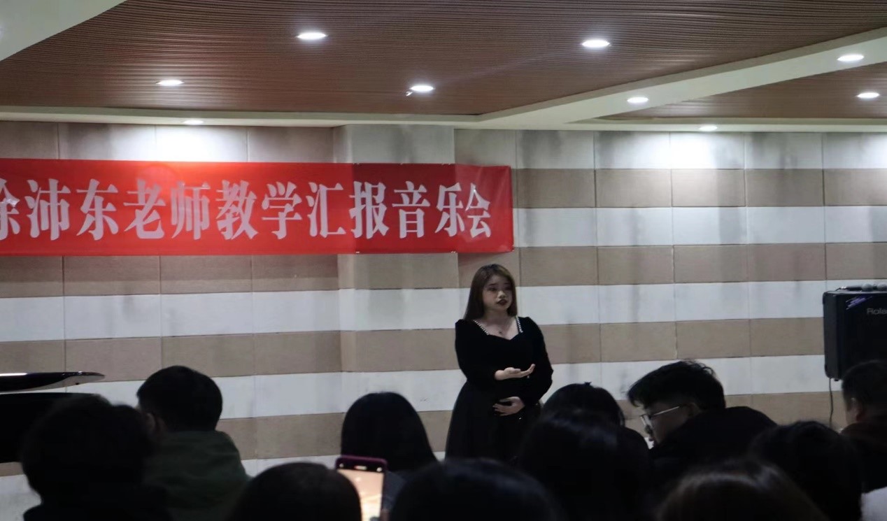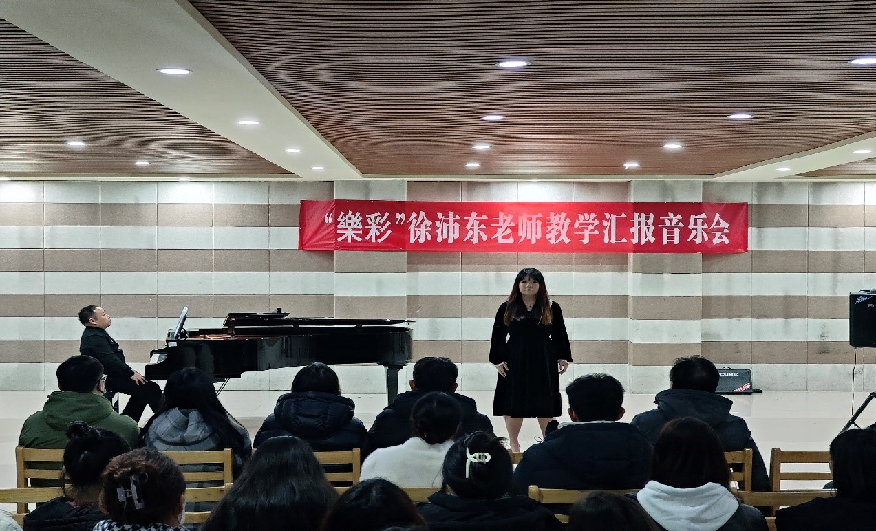 礼赞新时代,用音符拥抱未来梦想;奋进新征程,用音乐记载一路荣光。12月14日晚,音乐学院徐沛东老师樂彩教学汇报音乐会在艺术楼201如期举行。王在畅教授,钢琴与器乐教研室主任胡世红老师,声乐与舞蹈教研室主任吕倩倩老师,教师代表朱燕、江云鹏、董康坦、朱永昌、王鑫然、刘晨慧等,共同观看了本场音乐会。