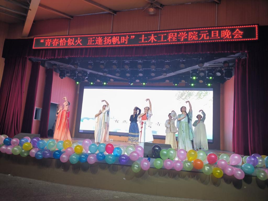 为陶冶情操,丰富同学们校园文化生活,12月20日晚19:00,土木工程学院在大学生活动中心举办了2024年“青春恰似火正逢扬帆时”元旦晚会。学院名誉院长、党总支书记郭二军、教学副院长杨子泉、教师代表及500余名学生共同观看了晚会。